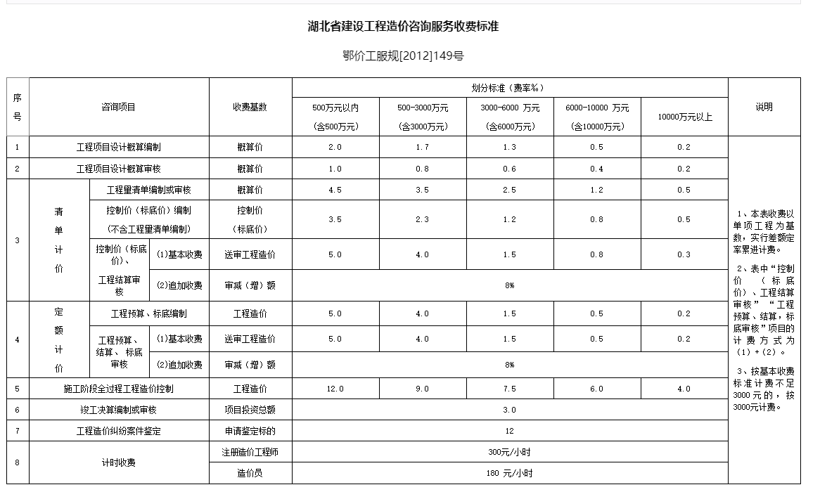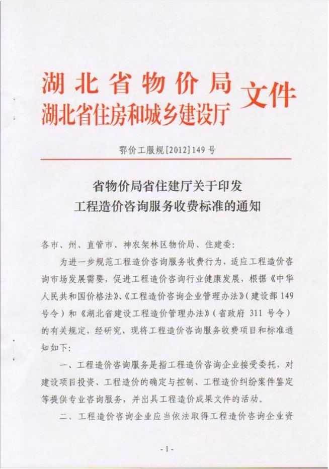 湖北省物(wù)價局省住建廳關于印發工(gōng)程造價咨詢服務收費(fèi)标準的通(tōng)知_鄂價工(gōng)服規[2012]149号